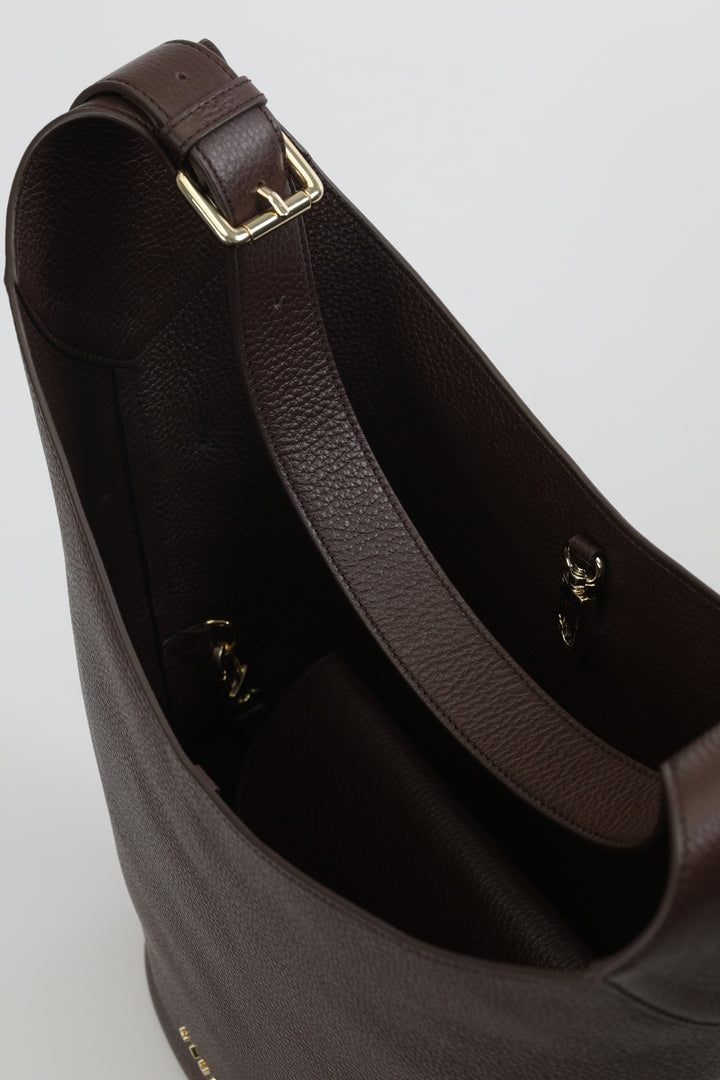 Lotus este un hobo bucket bag ideal pentru ținutele casual și smart casual. Accesorizarea metalică subtilă conferă acestui model un look atemporal, dar totodată modern, punând în valoare eleganța pielii naturale. Interiorul generos, cu un buzunar amplu, îți permite să îți organizezi eficient lucrurile marunte.